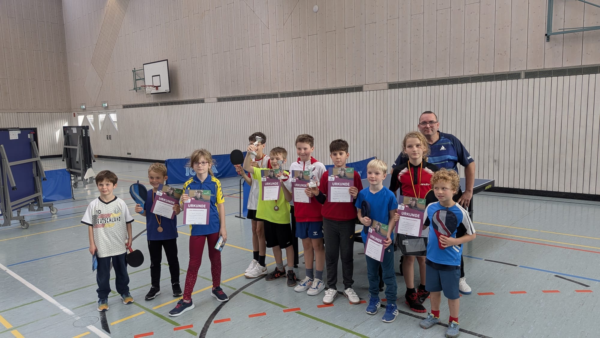 Am Samstag 15.11.2025 um 10:00 Uhr versammelten sich 19 Kinder aus verschiedenen Altersgruppen, um ihren Minimeister in der Böhnlichhalle zu finden. Teilnehmen durften Jungs und Mädchen bis 12 Jahre ohne Spielberechtigung für eine Tischtennismannschaft. Wie bereits im Ortsentscheid wurden die Kinder in die Altersklassen U12, U10 und U8 sowie Jungs und Mädchen eingeteilt. Es wurde in zwei Gruppen, U8 sowie U10/U12, jeder gegen jeden gespielt. Nach ca. drei Stunden qualifizierten sich folgende Kinder für die nächste Runde der bundesweiten Minimeinsterschaften: